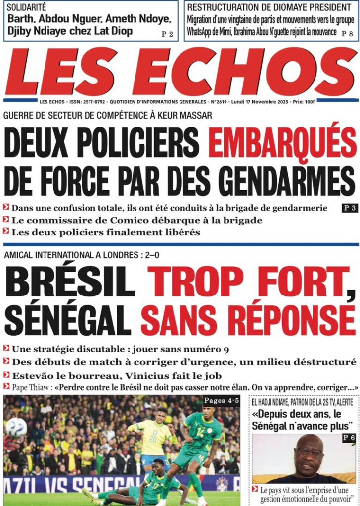 La Une Des Quotidiens – Lundi 17 Novembre 2025 (Avec Ma Revue De Presse)