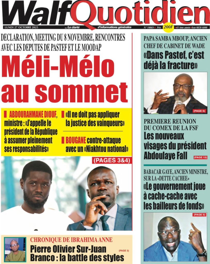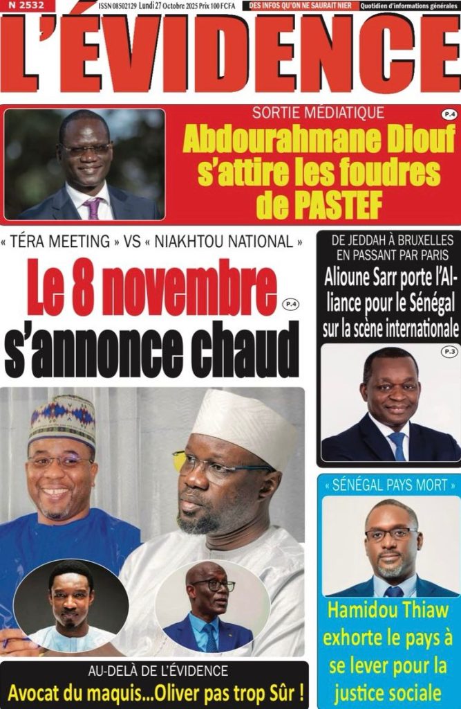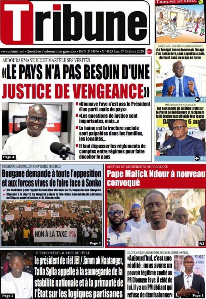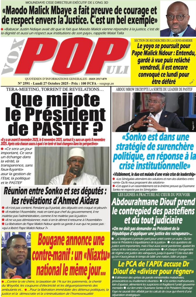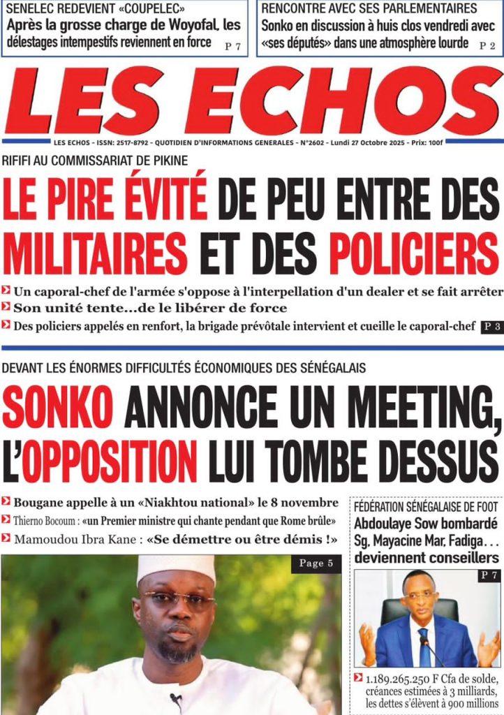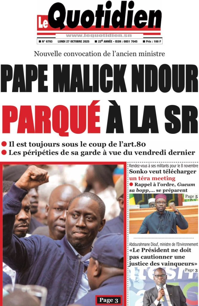 La Une Des Quotidiens – Lundi 27 Octobre 2025 (Avec Ma Revue De Presse)