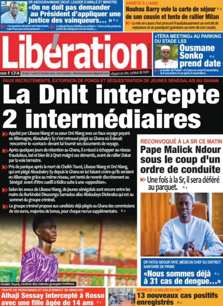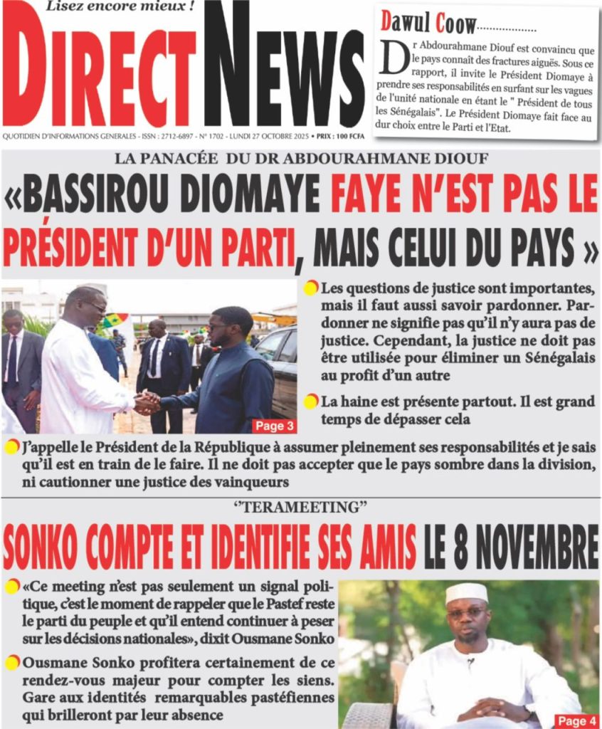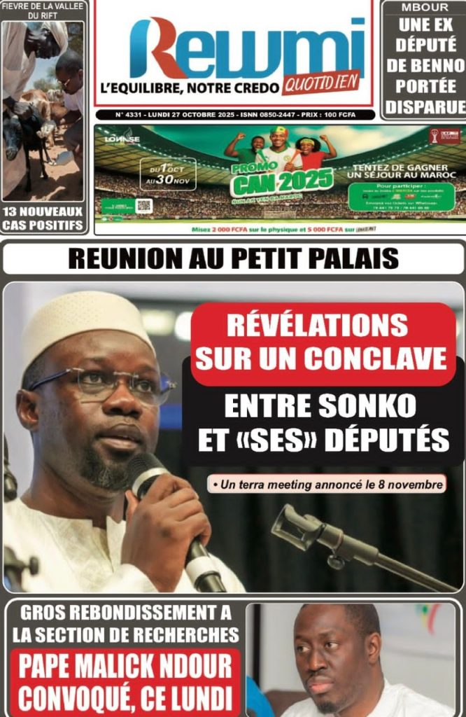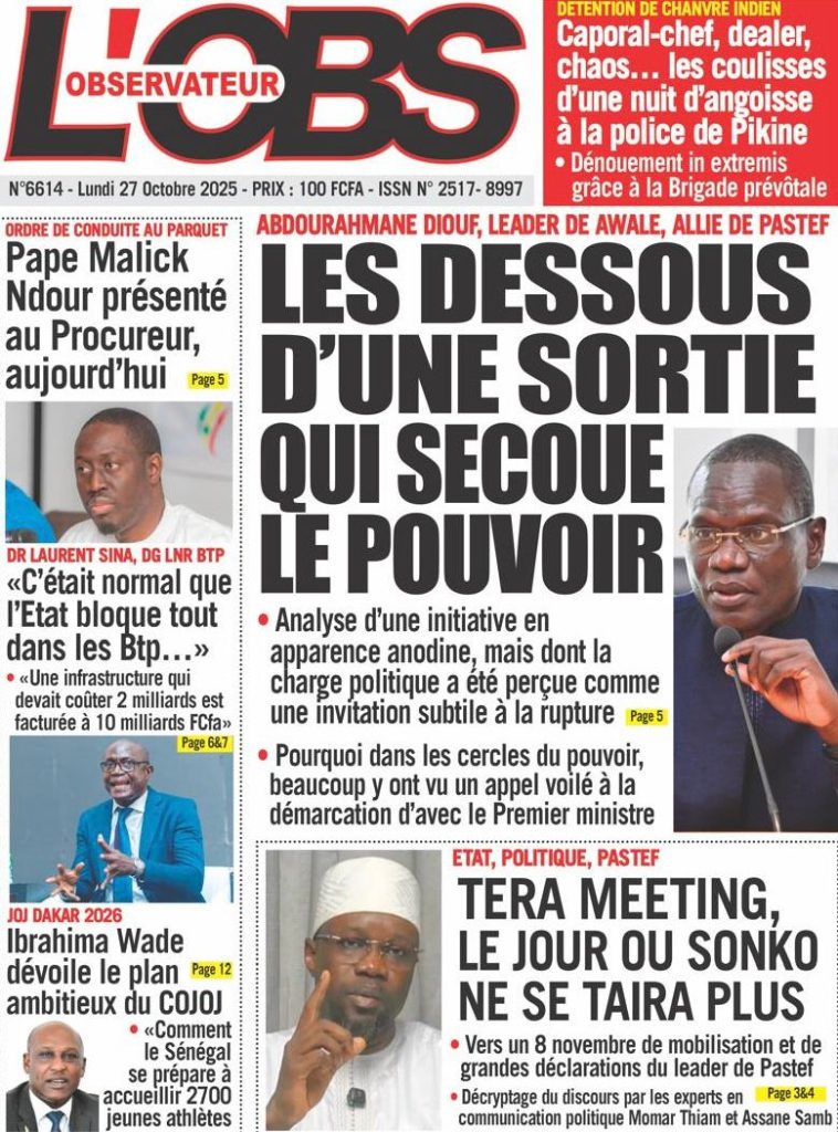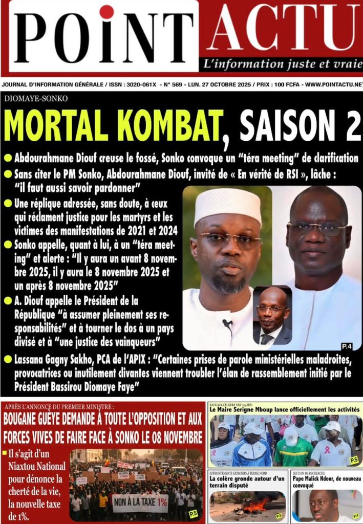 La Une Des Quotidiens – Lundi 27 Octobre 2025 (Avec Ma Revue De Presse)