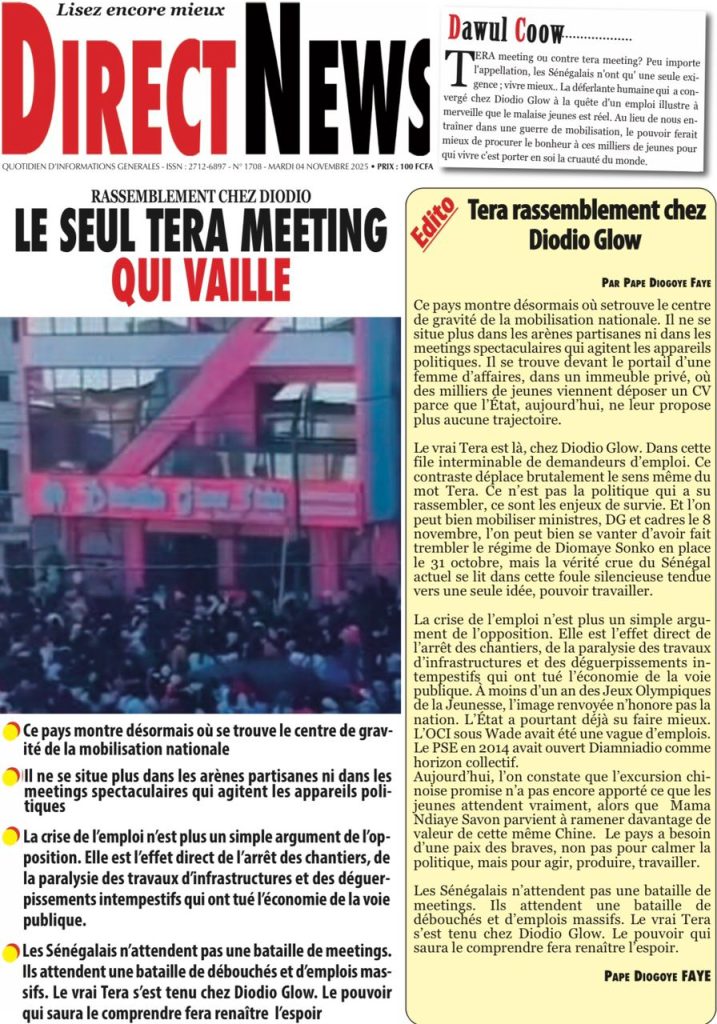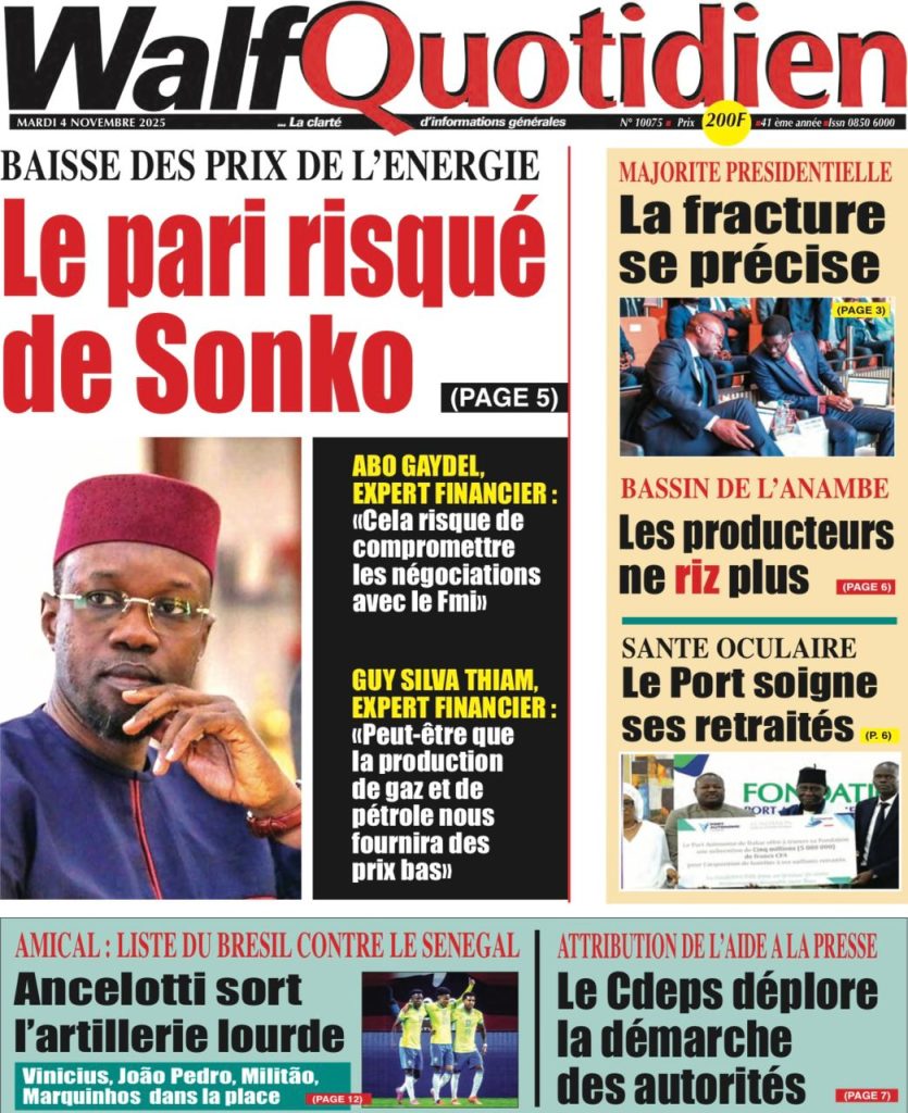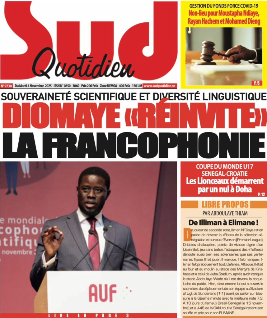 ActualitésLa Une Des Quotidiens – Mardi 04 Novembre 2025 (Avec Ma Revue De Presse) by Ndoffene4 novembre 20254 novembre 2025017 Share0