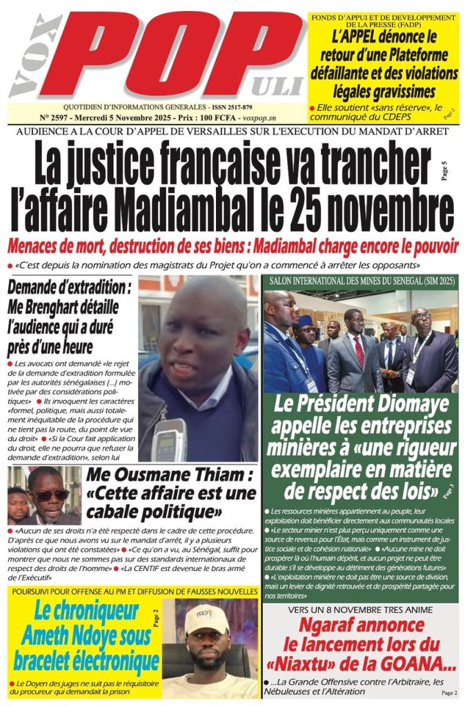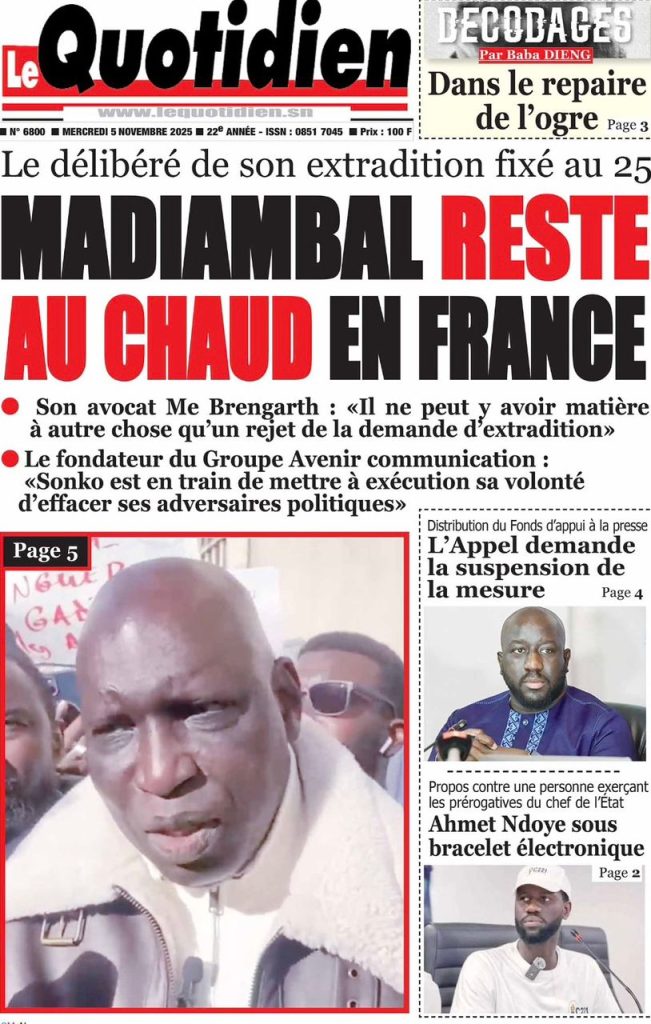 ActualitésLa Une Des Quotidiens Mercredi 05 Novembre 2025 (Avec Ma Revue De Presse) by Ndoffene5 novembre 20255 novembre 2025011 Share0