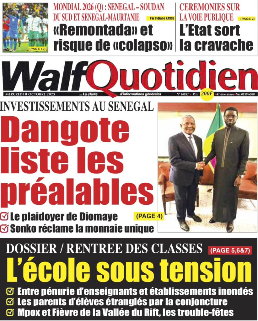 ActualitésLa Une Des Quotidiens – Mercredi 08 Octobre 2025 (Avec Ma Revue De Presse) by Ndoffene8 octobre 20258 octobre 2025030 Share0