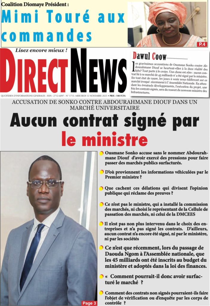 ActualitésLa Une Des Quotidiens – Mercredi 12 Novembre 2025 (Avec Ma Revue De Presse) by Ndoffene12 novembre 202512 novembre 2025023 Share0